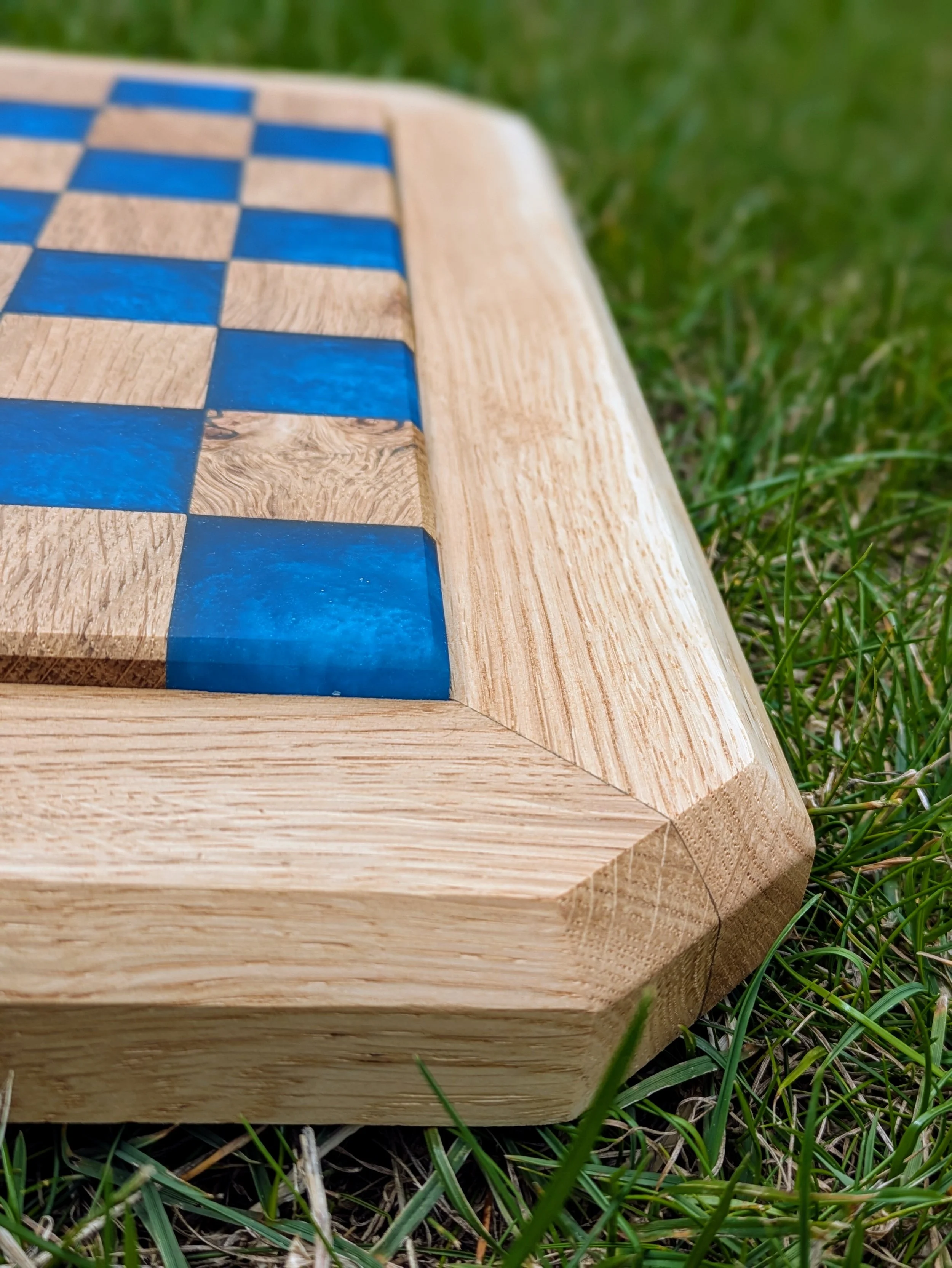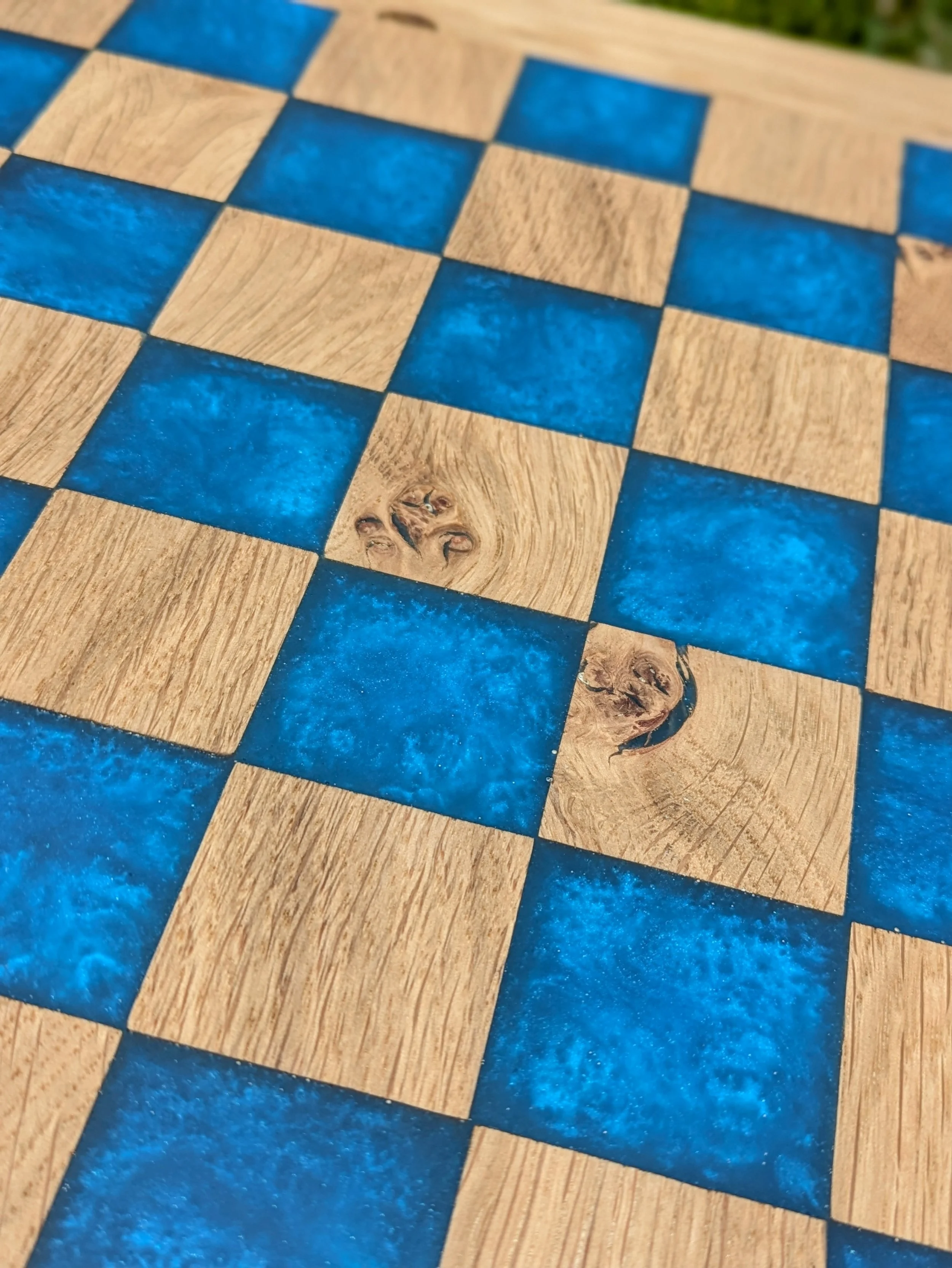 Oak Burr & Ocean Blue Resin Chessboard